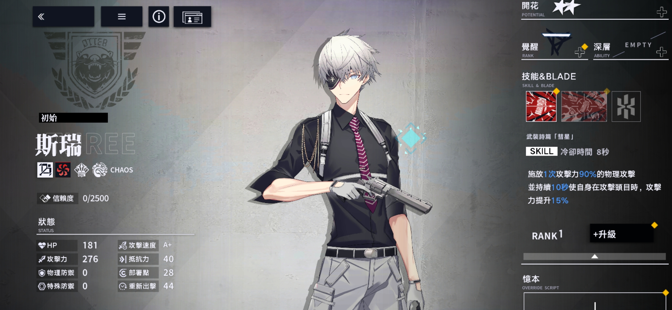 斯瑞的SKILL技能拥有极短的8秒冷却时间,能够立即释放一次相当于90%攻击力的物理伤害,并在接下来的10秒内提升自身对头目敌人15%的攻击力。这一特性使他在面对Boss类单位时具备一定的输出优势,属于专精于精英目标的增益型技能结构。然而,在常规小怪关卡中,这项加成几乎无法体现价值。
