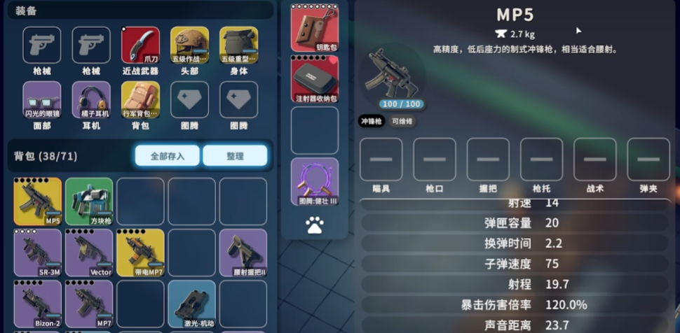总体来看,逃离鸭科夫mp5是一把兼具高控性和强输出的近战利器。合理配置配件后,不仅后坐力进一步削弱,弹道更加紧凑,而且弹容量提升显著,支持长时间连续开火。对于刚接触游戏的新手玩家来说,这把枪无疑是快速适应战斗节奏的理想选择。