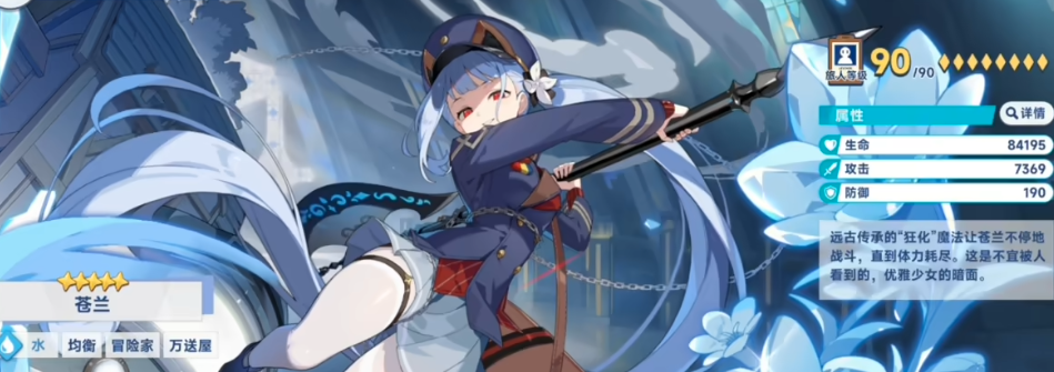 苍兰在游戏中定位为水属性控制型输出,具备通过蓄力提升伤害的能力,能够在战斗中释放高爆发的斩杀类技能。她在造成水属性伤害的同时,还拥有控制敌人的能力。其技能可对目标叠加“寒冬印记”,最多叠加5层,叠满后触发冻结效果,实现强力控场。随着战斗时间延长,她的持续输出与控制能力会显著增强,适合放置在需要蓄力爆发或主控位置,核心机制依赖技能的蓄力进度来完成强度跃升。