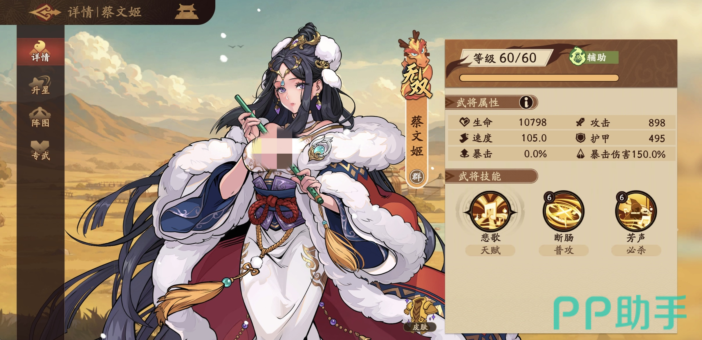 在《三国杀》手游中,觉醒蔡文姬作为稀有的女性武将之一,凭借其独特的“拉条+增伤”双效机制,长期稳居高人气辅助梯队。她并非传统意义上的治疗型或护盾型辅助,而是以节奏控制为核心——通过主动技能改变全队行动顺序,并同步提升我方输出能力与敌方受击负担,因此在PVE副本攻坚与PVP竞技对抗中均具备不可替代的战略价值。