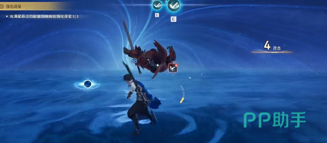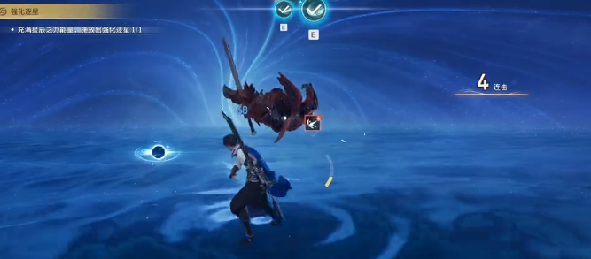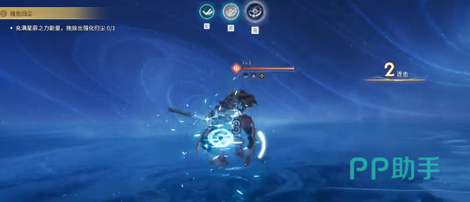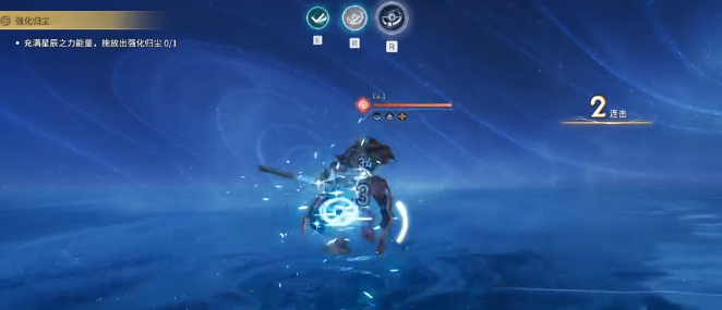 当完成任意一次强化技能释放后,立即衔接普攻,可触发“星辉共鸣”,进一步提升该次普攻的物理加成与特效表现。而真正决定爆发上限的关键机制,是“飞星闪”——需在单局内累计达成30次连击(含技能命中、普攻命中及部分特效触发),随后先施放一个已强化的技能,再迅速接二技能,即可瞬发多段位移+高额伤害组合。该连招在野区清线、对抗Boss或关键团战切入时具备极强战术价值。