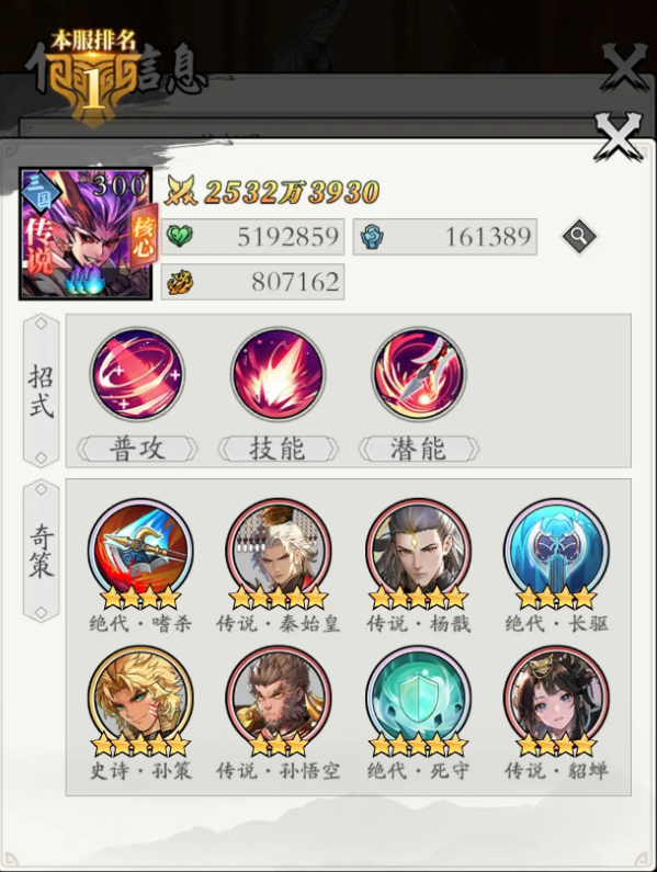 当游戏进程推进至后期阶段,玩家将面临更高强度的竞技对抗,包括跨服战与高端PVP环境。此时推荐采用黄帝+杨戬+上官婉儿+李世民+扁鹊的终极阵容。黄帝具备强大的群体伤害能力,可在短时间内造成毁灭性打击;杨戬持续施加压制效果,限制敌方关键角色发挥;上官婉儿为输出创造安全环境,保障技能释放流畅;李世民在此阵容中扮演辅助核心,提升全队容错率;扁鹊依旧承担治疗重任,确保队伍在持久战中保持战斗力。根据实际战况灵活调整站位与技能释放顺序,是取得胜利的关键。