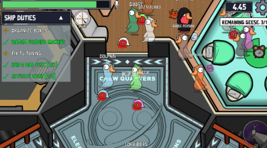 游戏中核心的玩法可以先完成相应的小任务,如果是鹅阵营的玩家们,可以利用清理垃圾或者修理设备,来进行把进度条拉满之后,就可以获得胜利。