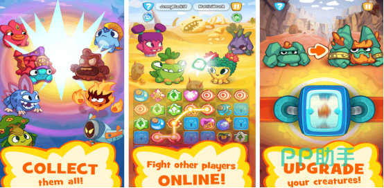 非常可爱的画面,还以消除为核心玩法。当您看到各种色彩丰富的物品时,要通过滑动手指的方式将相同颜色的物品匹配起来,就能快速消除,还能获得分数,与此同时也会形成更高等级的精灵,操控其中的精灵,参与到紧张刺激的战斗模式中,将其他敌人消灭就能完成闯关的任务。