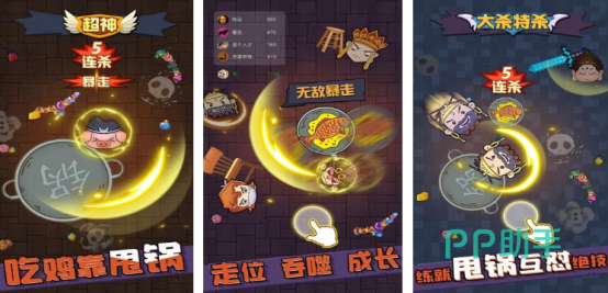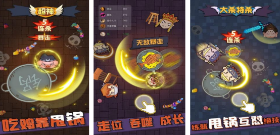 采用轻竞技的玩法,您还可以看到自己非常熟悉的角色,比如如来佛祖等等。玩家在游戏中需要通过收集大量金币的方式,让自己的战斗实力变得更加强悍,也可以利用这些金币到商城中兑换各种炫酷的皮肤,再和其他敌人展开对抗的过程当中,只是通过向对方甩锅就能将其彻底消灭。玩家手中的平底锅就是最致命的武器,直接将其命中就能消灭。