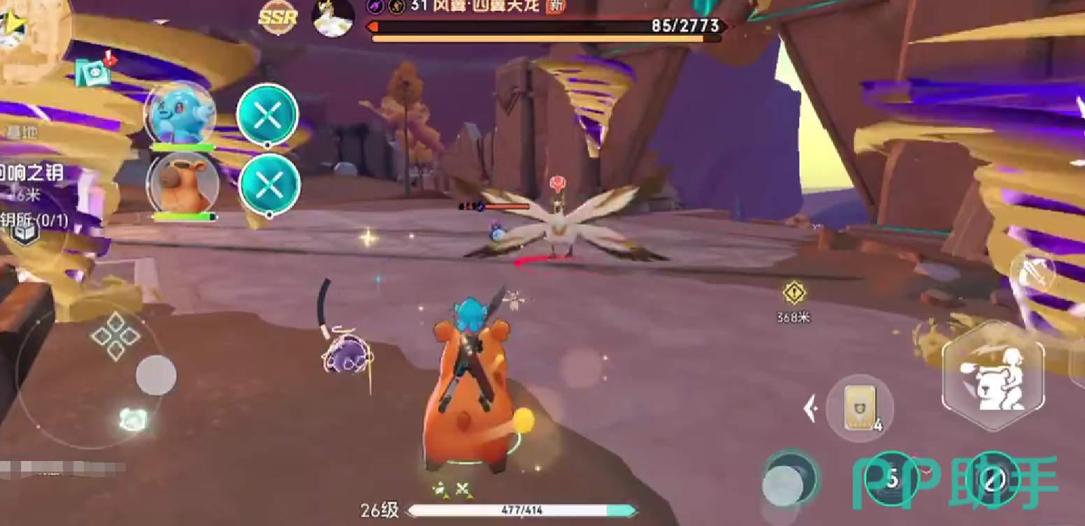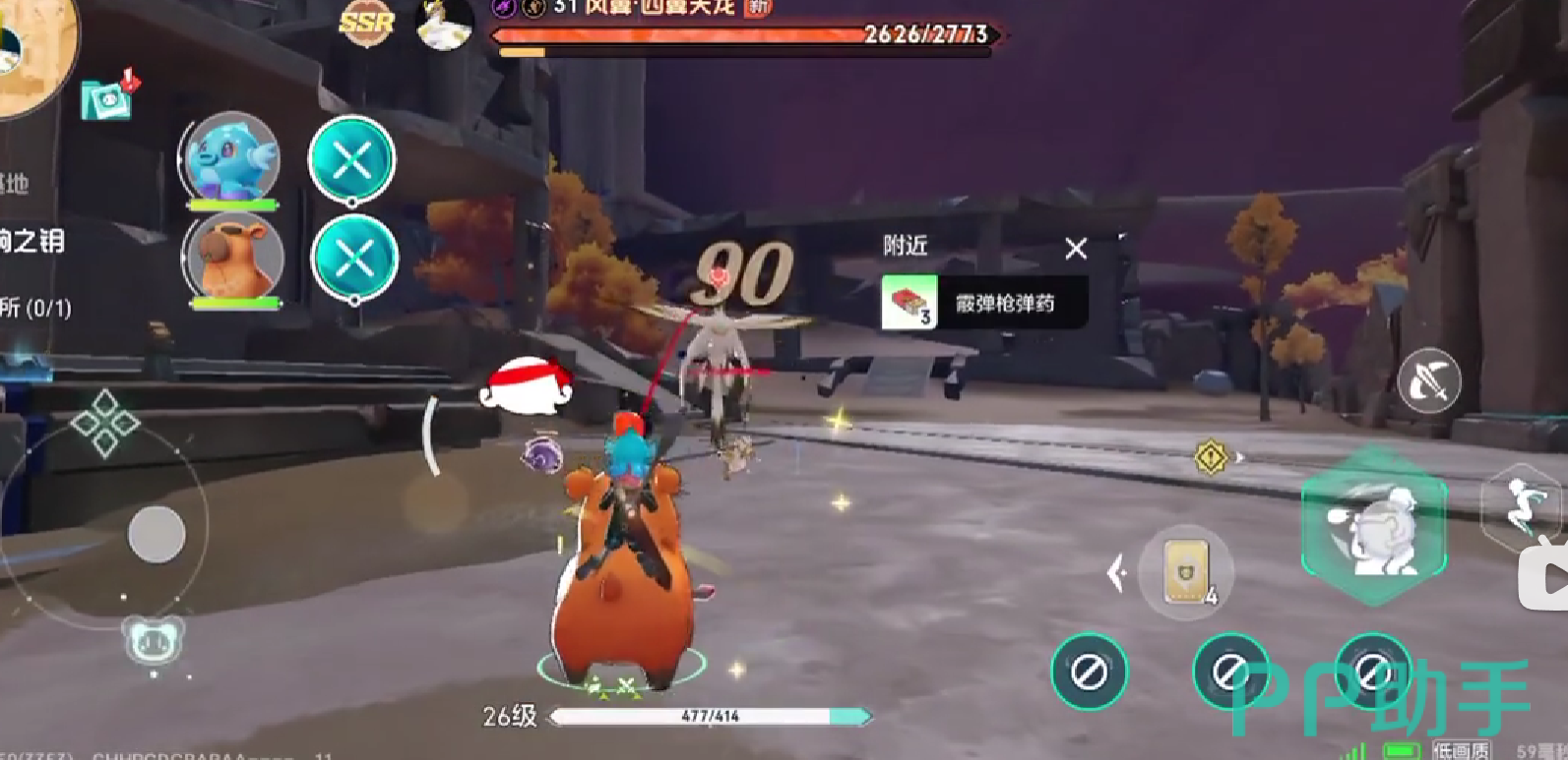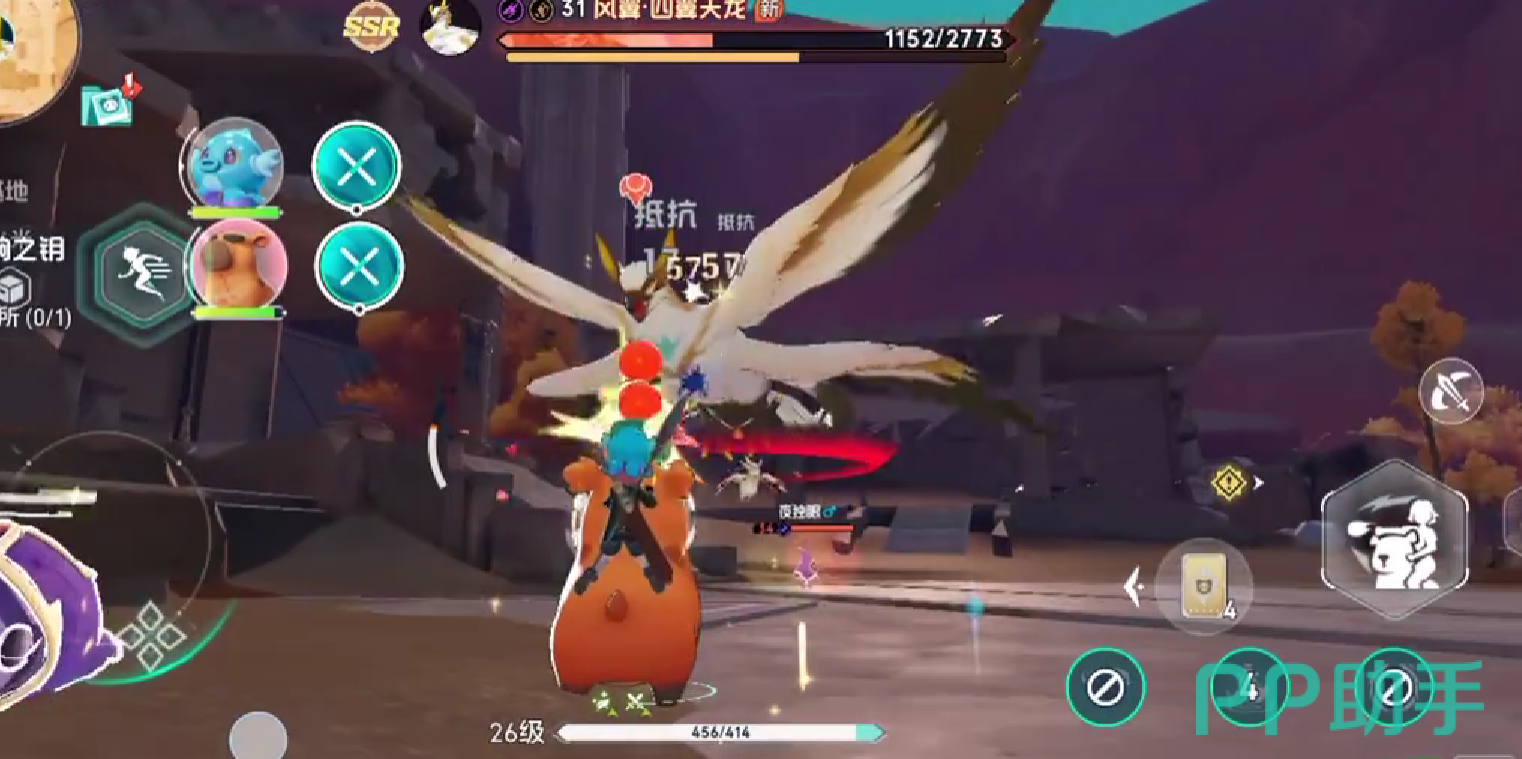 顶呱呱的第一个技能是天降萌兽,当顶呱呱释放这个技能之后,可以迅速地向上空进行跳跃,随后对敌人释放出攻击倍率有250%的重击,当重击伤害成功判定之后,不仅可以击飞敌人,还能够解除敌人的霸体状态,这个技能非常适用于怪物群数量较多的情况,不仅能够大批量的清理怪物群,还能够帮助其他奇兽创造输出环境。