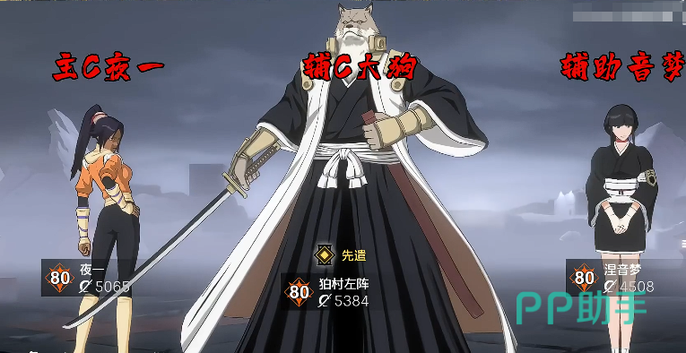 本套阵容采用双核心输出+双功能辅助结构:主C为四枫院夜一,副C兼抗性压制位为狛村左阵(俗称“大狗”),辅助位由音梦担任。该组合并非简单角色堆叠,而是基于技能逻辑深度耦合——音梦提供全队增益覆盖与状态叠加机制;狛村左阵承接增益后释放减抗与护盾,扩大输出窗口;四枫院夜一则在多重增伤与抗性压制双重加持下,于万解阶段完成集中爆发。