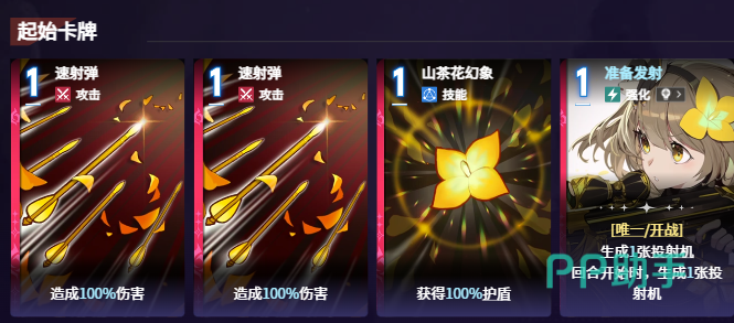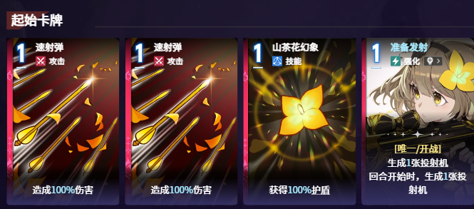 起手阶段,「速射弹」是维诺尼卡最基础却极为关键的启动卡牌。该卡造成100%基础伤害的同时,附带20%概率触发特效——直接生成一张「投射机」加入手牌。这一机制为后续资源循环奠定基础。而「山茶花幻象」则承担核心防御职能,施放后立即获得等同于自身最大生命值100%的护盾,在近身作战或被集火时显著提升容错率。二者配合,可实现前期资源积累与生存保障的双重稳定。