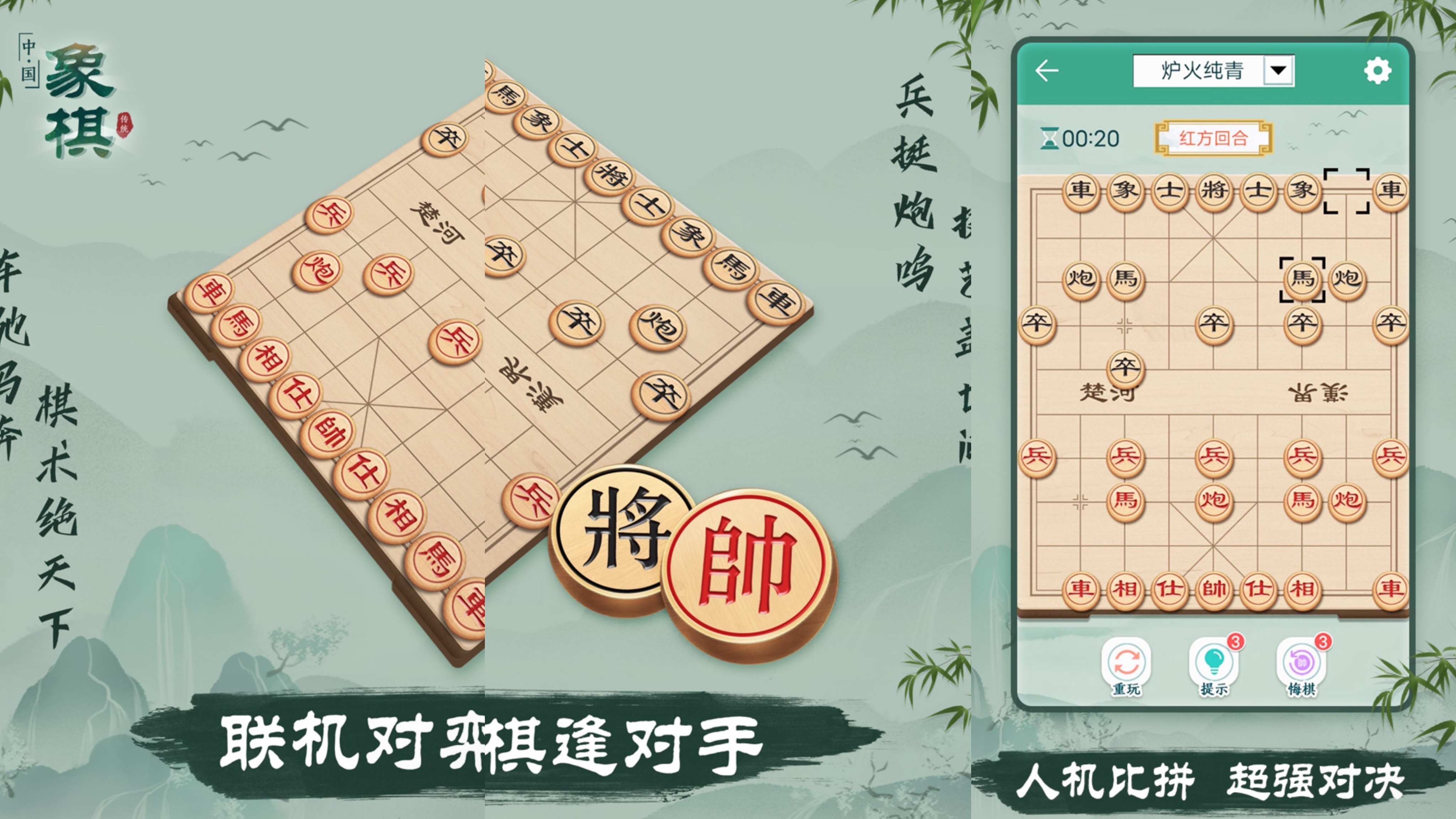 象棋可以说是中国的国粹之一,在我国有着悠久的历史。游戏的玩法也很简单,就是双人博弈,直到最后分出胜负。如今象棋也成为了一种广泛的娱乐活动,有了这款游戏,就可以随时享受到下棋的乐趣。游戏有实时匹配模式,玩家可以在线匹配对手,进行棋艺pk;也可以选择和ai下棋,培养自己的棋艺。不管是新手还是老将,这款游戏都能带给大家象棋的魅力与智慧的体验。