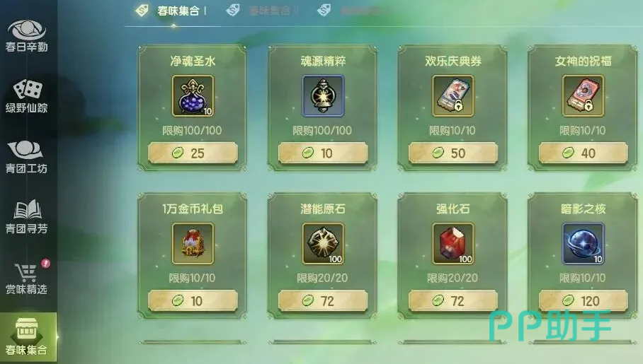 紧扣清明节令,“青团工坊”推出主题制作系统。玩家收集指定活动材料后,可合成多种青团类型,每种对应独立奖励线路,包括图鉴宝箱、女神的祝福、无双符文至尊礼包等稀有内容。材料可通过各子玩法循环获取,推荐分批次完成不同配方,以实现奖励全覆盖。
