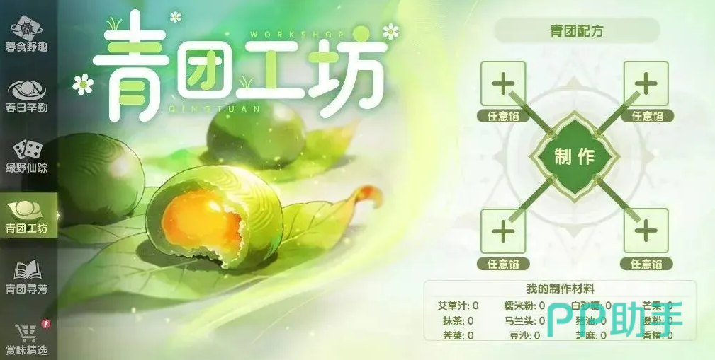 与之联动的“青团寻芳”为兑换延伸模块。玩家每成功解锁一种青团配方,即可在该板块激活对应档位福利,形成“制作—解锁—兑换”闭环。二者协同推进,显著提升资源转化效率与整体收益密度。