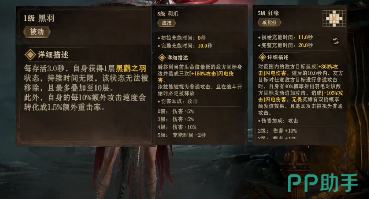 鸟姐的第二个技能利爪,会在开局时刻,迅速移动到敌方血量最低单位处,并且造成三次普通攻击伤害,该判定伤害,会根据鸟姐基础攻击倍率进行折算,该技能虽然在pve战场当中,并不能够造成大量伤害,但是在pvp内,鸟姐可以凭借这个技能,在开局直接秒杀敌方输出单位。