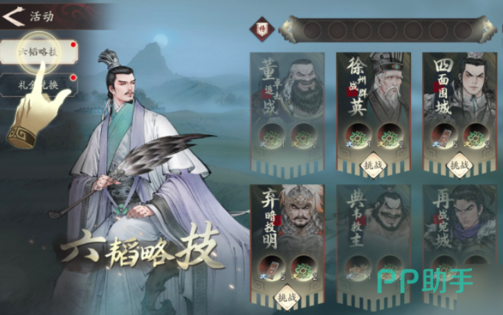 该玩法入口位于主界面右上角,开启后可进入挑战。整个“六韬”共设有8个关卡,随着进度推进,敌人强度逐步上升,每通过若干关卡即可领取对应奖励。整体机制与其他副本如“见真章”类似,但整体战斗压力明显更高。建议玩家等级达到40级以上,并能稳定通关“见真章”后再尝试此模式,否则不仅效率低下,还可能因反复失败浪费资源。成功完成挑战并获得6个龙评分,即可解锁强力谋士贾诩;若累计获得虎、龙评分总数不少于4个,则可领取武将于禁。