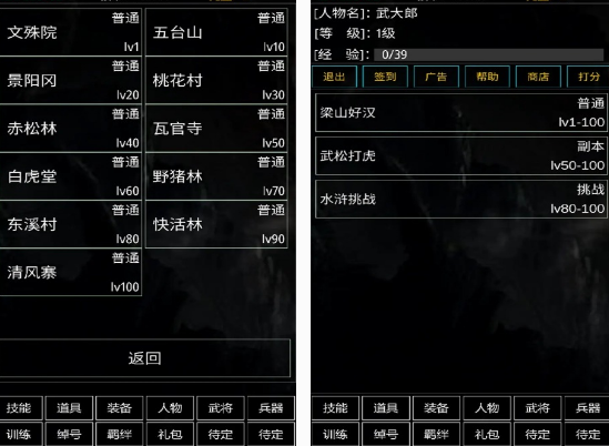 相对于大家熟悉的水浒传游戏,在这款中虽然也能看到大家耳熟能详的故事剧情,比如在武松打虎这样的副本中,你就可体验一下。整个过程,当然还收录了这个作品中很多的场景,无论你是想要提升装备,还是使用兵器等,大家都能在进入游戏以后,想办法的提升自己的战斗实力,属于玩法比较简单,设计又非常不错的手游。