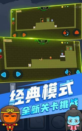 游戏精心设计了众多关卡,玩家需携手伙伴,共同操控角色,巧妙穿越迷宫,直至抵达终点。双人间的默契与协作,是通关不可或缺的要素,游戏内容充实多样,等待玩家在游戏中尽情发掘与体验。游戏内角色设计非常的可爱,任玩家挑选。每个角色都拥有独特的能力与特性,为玩家的探险之旅增添无限可能。面对各式陷阱,需灵活运用冰火小人的特性,确保安全通行。玩家需保持敏捷与灵活,让冰火小人携手并进。