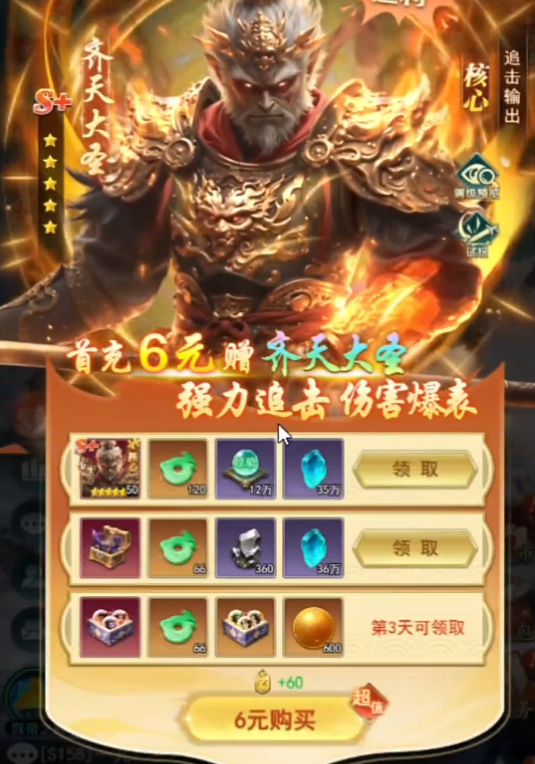 获取方式便捷高效:玩家完成首次充值即可直接领取齐天大圣;此外,亦可通过游戏内孵蛋系统进行抽取,存在直接获得五星品质齐天大圣的概率。