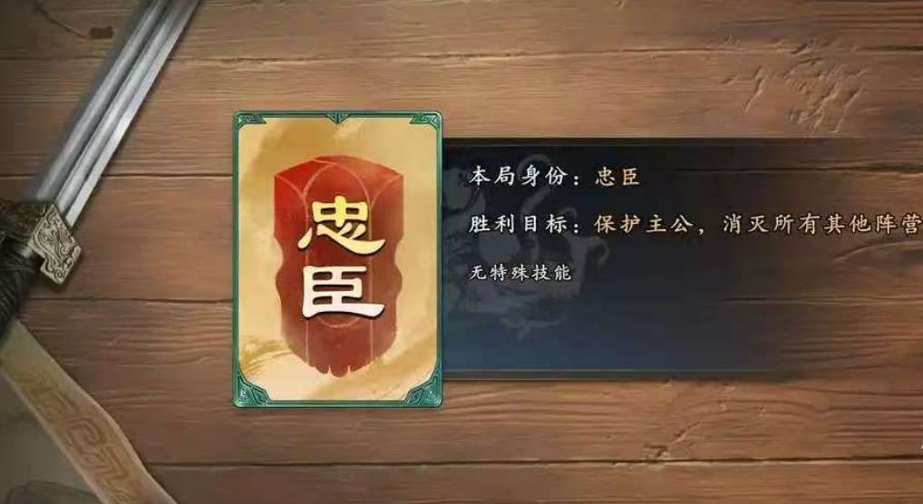 忠臣类包括:忠臣、储君、上将、禁军。忠臣、储君没有技能,追随主公。上将主动表明身份则每轮多一次杀的机会。禁军可以在主公危险时打出全部的杀,抵挡伤害。
