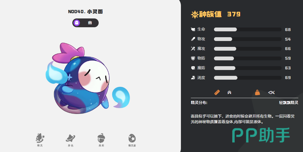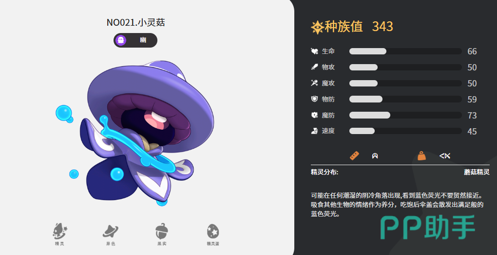想要深入了解幽灵系精灵的玩法,首先需要掌握它们的核心优势。这类精灵通常擅长干扰对手节奏,能够施加异常状态,并通过资源窃取或能力削弱来打乱敌方部署。在成长过程中,许多幽灵系精灵还会获得第二属性,从而触发新的战斗机制。例如小灵菇,作为基础幽灵属性精灵之一,后期可进化为幻灵菇,转变为幽灵+草系的双属性形态。这一转变不仅提升了克制面的广度,也在技能组合策略上提供了更多选择空间。
