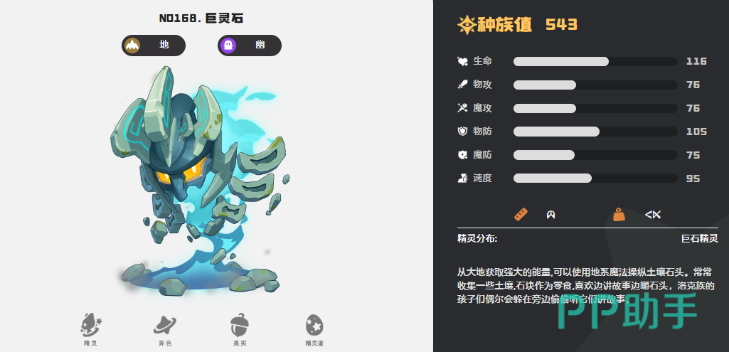 此外,还有与地面系结合的双属性精灵——巨灵石。该精灵在释放技能时,若自身消耗的能量高于目标,则在行动结束后会扣除双方的能量差值,这一机制可用于限制高耗能对手的连续施法,属于典型的控场型打法。而在高编号精灵中,大头古龙也备受关注,作为龙+幽灵双属性的存在,其最终进化形态寂灭骨龙拥有每6回合自动复活一次的强大生存机制,使其成为队伍中可靠的承伤核心,显著提升团队续航与翻盘能力。
