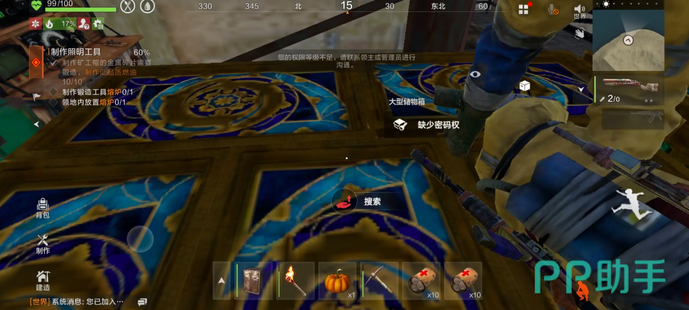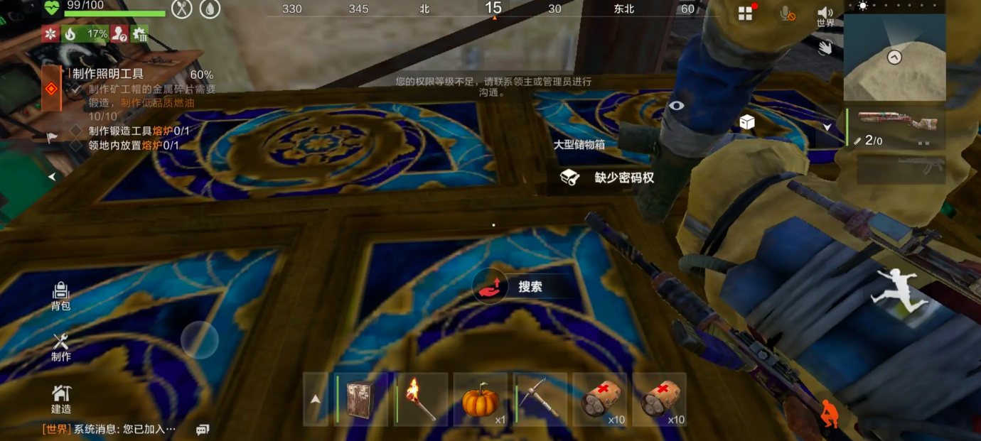 武器装备体系覆盖从原始石斧到现代制式枪械的完整演进路径,总计提供47种可装配载具。玩家可根据战局自由搭配组合,但多数枪械需先获取对应图纸,并收集指定材料,在制作台完成组装后方可解锁使用。