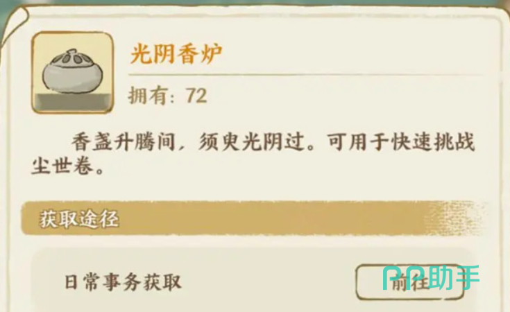 获取文物后便可进入养成阶段。除了使用同种文物进行升星外,玩家还可通过参与尘世卷副本收集各类专属养成材料,用于提升文物等级。文物共分为四种类型,每种类型的升级材料各不相同,因此需针对性地准备资源。若希望加快养成进度,推荐使用光阴香炉增加副本挑战次数,以便更频繁地获取所需素材。光阴香炉可通过完成日常活动如逐鹿演武台任务获得,是提升效率的关键道具。