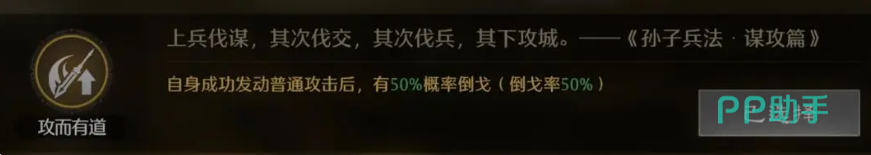 在兵法配置方面,关羽推荐选择【攻而有道】与【奋鼓】。前者可在50%概率下于普通攻击时触发【倒戈】效果,将部分伤害转化为自身兵力恢复;后者则随机提升一名己方部队2%的伤害输出,若增益落在关羽身上,则能进一步放大其输出能力。