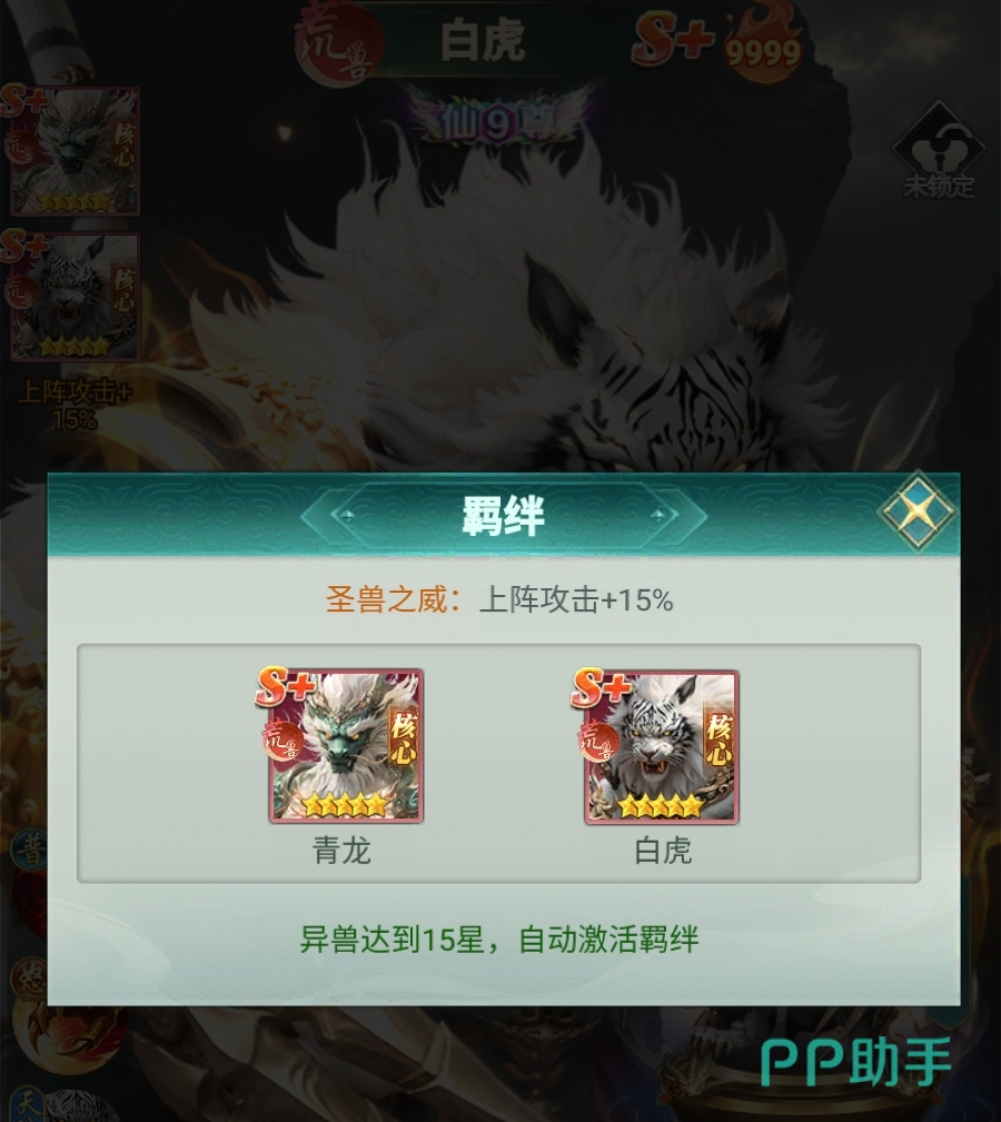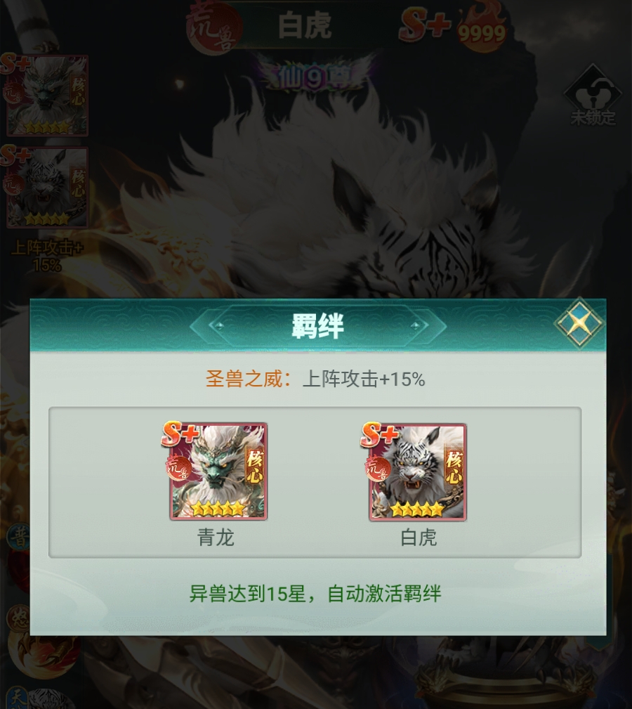 随着星级提升,白虎的成长路径愈发清晰。当星级达到九星时,其可在战斗中随机获得嗜血效果,最高叠加至三十层,每层均同步提升攻击力与吸血比例,且效果全程持续不衰减;晋升十星后,每次触发嗜血的最低层数固定为三层,大幅缩短叠层周期。此外,在角色突破至真仙二重境界后,每层嗜血额外赋予白虎对人形敌人2%的伤害加成——该特性使其在PVP对战中优势突出,竞技场出场率长期位居前列。