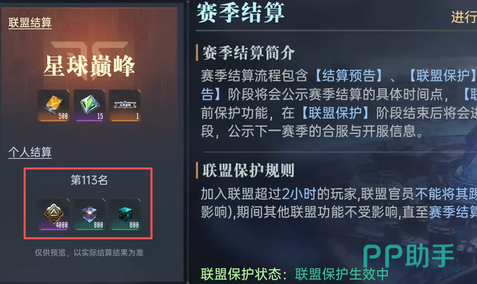 赛季结算结果将直接影响后续补给权重。结算依据为巅峰赛最终积分与全服排名,系统按三阶段推进:先发布“结算预告”,再开启“联盟保护”窗口期,最后公示“结算通告”。需特别注意,“联盟保护”阶段前的积分定格具有决定性意义——此阶段前达成的巅峰积分越高,下赛季初始补给份额(含基础奖励量、任务加成系数、货币获取效率)将获得越显著提升。