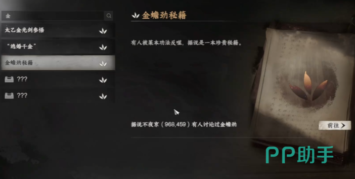 另一种获取途径为道具兑换,所需核心物品为京谕珠,兑换地点位于不夜京的珍宝兑换处。不夜京属于高阶区域,需完成特定主线任务或解锁相应权限才可进入。抵达后寻找负责兑换的NPC,其提供包括金蟾劲在内的多种稀有武学秘籍,但每次兑换均需消耗一定数量的京谕珠。