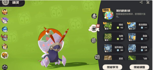 技能搭配直接影响星辰之虫的实战表现。推荐配置包括虫鸣、石板炮弹和冲撞等通用技能。核心技能为重名,能够叠加魔法连击效果;若队伍中存在其他虫系成员,连击次数额外+1,最多可叠加三层。这一机制使其在阵容中可担任主力输出位置,具备较强的爆发能力。掩护技能则能显著提升闪避率,有效降低受到的伤害,在持久战中尤为关键。实战中建议先通过掩护强化自身生存能力,随后利用连击机制持续压制对手血量,同时激活相应的羁绊增益。在阵容组合上,可考虑与巨岩甲虫或幻影蝶等精灵协同作战,形成良好配合。