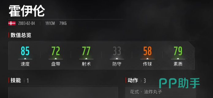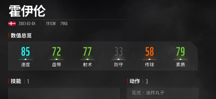 从基础面板来看,霍伊伦各项技术属性普遍稳定在80分区间,属于典型的均衡型前锋。区别于初期过渡使用的低阶前锋,他在速度维度具备明显优势——速度值达85,在同梯队锋线球员中处于上游水平。这一特性使其在单点突破、边路内切等高机动性进攻场景中具备天然适配性。尤其在反击节奏加快、前场空间压缩的对局中,该属性可有效提升持球推进效率与防线撕裂能力。