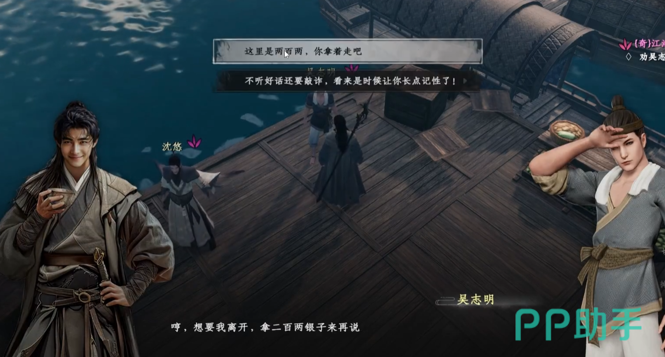 第二个任务名为“江海图志向淮陵”,玩家需前往坐标(232,691)寻找沈悠。他会请求你协助劝离正在附近玩打水漂的吴志明,以便他能顺利进行凤尾鱼的打捞工作。支付二百两银子成功劝退吴志明后,沈悠会在后续打捞过程中获得一条特殊凤尾鱼,并分给你其中一条。仔细检查这条鱼时,会发现其腹内藏有异物。处理完毕后,可从中取出一本秘籍——八方凌云丹配方,作为本次任务的核心奖励。