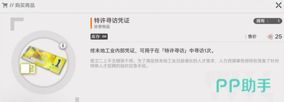首要获取渠道为采购中心内的“保障配额交易”功能。进入后,在指定配额兑换栏中,可使用已持有的其他游戏内资源(如通用配额、活动代币等)按固定比例兑换特许寻访凭证。需注意:该兑换设有周/月数量上限,不可重复无限制兑换,建议结合当期限定干员上线节奏,预留资源于关键卡池开启前集中兑换。