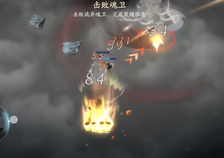 进入副本后,场景切换至幽冥界域,地面弥漫灰雾,四周游荡大量魂卫单位。此类敌人具备基础突进与连击能力,但单体血量偏低(初期约12万–18万),合理利用角色技能CD循环与位移闪避即可高效清场。操作要点在于保持移动节奏:边输出边后撤,避免被多只魂卫围堵导致减员。