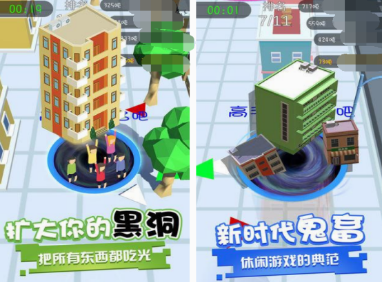 置身于这款游戏中的玩家,扮演的并不是大家熟悉的小动物或者是人物,而是可吞噬一切物体的黑洞,只不过在一开始的时候由于黑洞体积特别的小,所以只能对一些小的物品进行吞噬,随着吞噬越来越多的情况下,体积也会变得越来越大。无论是生活中的各种物品,甚至是高楼大厦等,都能吞入黑洞里面。面对比自己大的黑洞时,也要及时躲避。