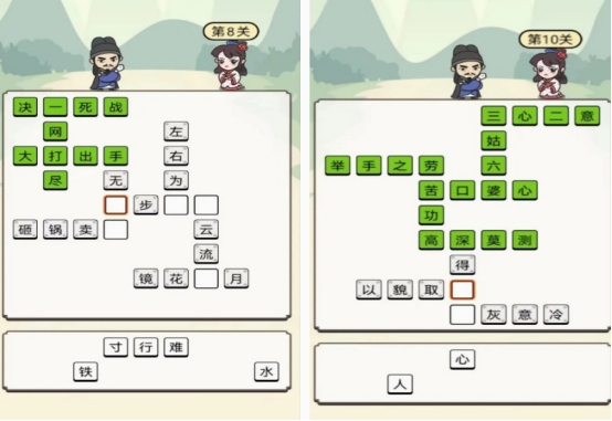 由于成语接龙游戏能增长对成语知识这方面的储备量,所以无论是大人还是孩子,都应该多玩这种类型的游戏,将各种字词组成不同的方阵,你需要在显示出的文字中正确点击,放在相应的方块,里能顺利完成接龙的情况下,就可以接受挑战。属于比较休闲又好玩的游戏,如果孩子在玩的过程中,成语储备量并不是很充足的话,家长也可通过合作的方式来完成闯关。