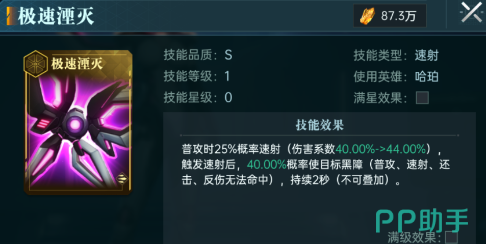 作为s级别的英雄哈帕,偏向于控制,而他的技能极速湮灭能够有效的提供概率,从而让敌人进入到黑障的状态,一旦进入到这种状态的话,就可以很好的控制,从而提高了整个队伍的生存能力。
