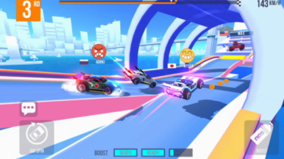 在这款能展开赛车的游戏中,不仅支持多个玩家共同体验,也采用独特的场景和画面进行设计,并不是以现实生活中的赛道为主,而是会让你置身于广阔的大海,甚至是上空中,这样的环境。与其他的玩家展开对决的时候,每个人都可拥有自己炫酷的赛车,不仅比拼的是速度,同时也要将对手赶出跑道,这样才能有机会获得最终的胜利。