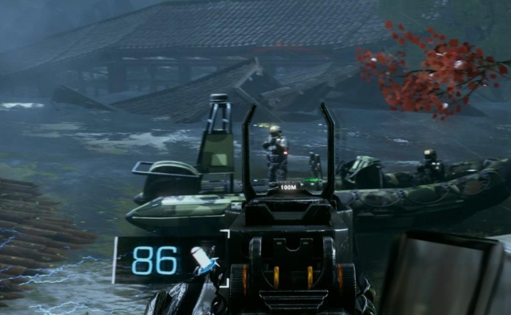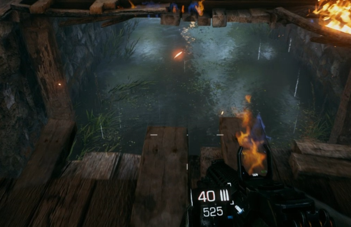 想要通过高压水这个区域的时候,玩家还要最先就攻击气垫船,因为玩家在通过这个区域的时候会碰到敌人的气垫船发出的攻击,为了能够节省时间跟子弹,玩家最先攻击是比较好的,额外还需要使用掩体,这里的掩体就是房屋,树木等等。
