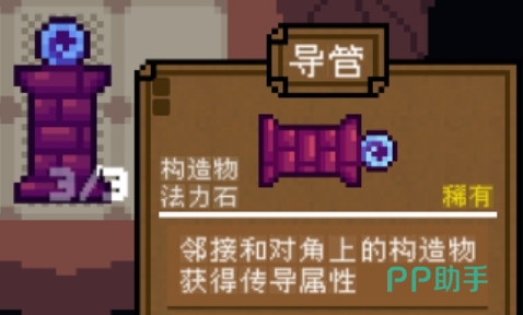 构造物亦是游戏中一大特色板块,涵盖砖块、砖墙、屋顶、导管以及气球等,这些构造物共享一个共同特质,即均能为物品增添一点的格挡能力,并且这种格挡效果具有叠加性,也就是说玩家在游戏中搜集到的构造物数量越多,以屋顶这一稀有构造物为例,它拥有独特的加持效果,能使下方的所有构造物额外获得加1点格挡叠加,整体防御能力得可以得到提升,再看导管同样身为稀有构造物的它与法力石有着很多联系,能够赋予邻接和对角上的构造物传导属性,不过需要注意的是,导管自身存在沉底的特性。