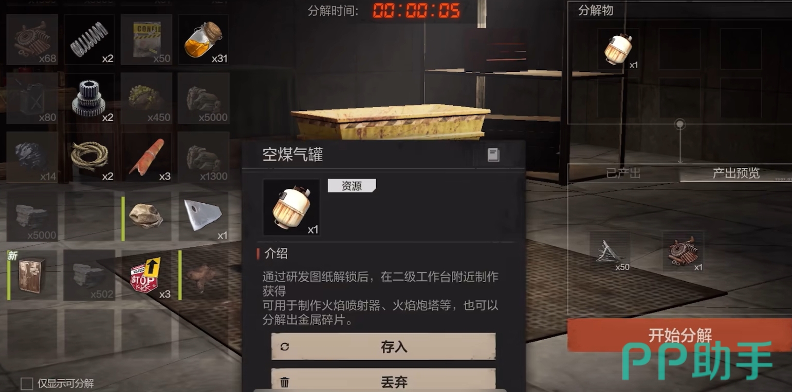 不同的建筑区域内还有各种不同颜色的卡房,它们需要使用房卡才能打开,且房卡有使用次数限制,用完后需重新去开宝箱获取,亦能去别人家里抄家,拿走他人的房卡为自己所用。当各位所收集的资源过多,无法全部运走时,也可在地图上找到一些有分解机的地方,将不需要的物品放入分解机分出基础材料然后带走,最大化自己的探索收益。分解机是谁都可以使用的公共道具,且分解机旁大多较为空旷,所以各位在分解时还需小心埋伏。