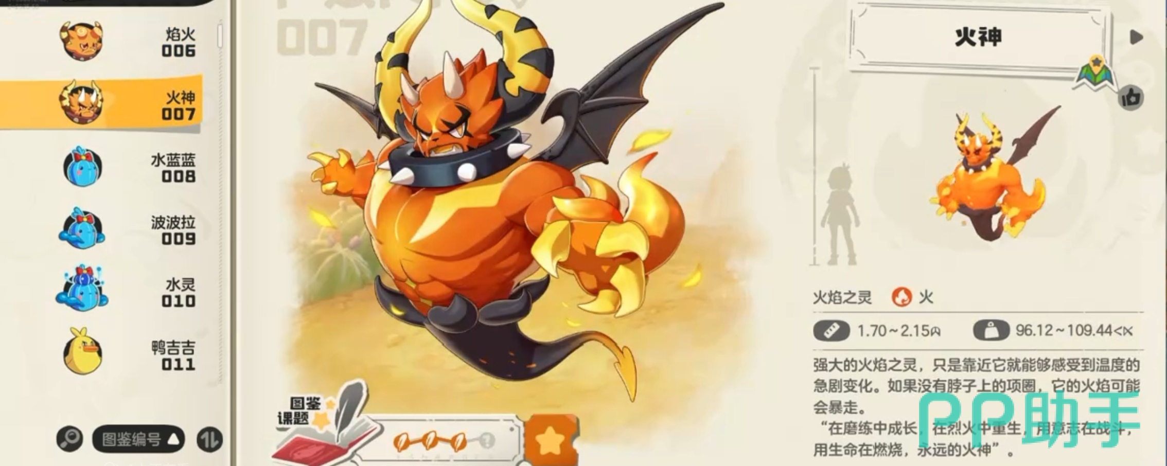 首位推荐:火神 ,作为初始可选精灵之一,其最终形态种族值可达 626,拥有出色的攻击输出与出手速度。“炽焰审判” 技能在面对草、冰、虫系目标时能打出显著伤害,配合 “火焰增幅” 特性后,火属性技能威力进一步增强,在PVP对战中具备极强的清场能力。最重要的是,火神无需复杂获取流程,只需推进主线任务即可获得。