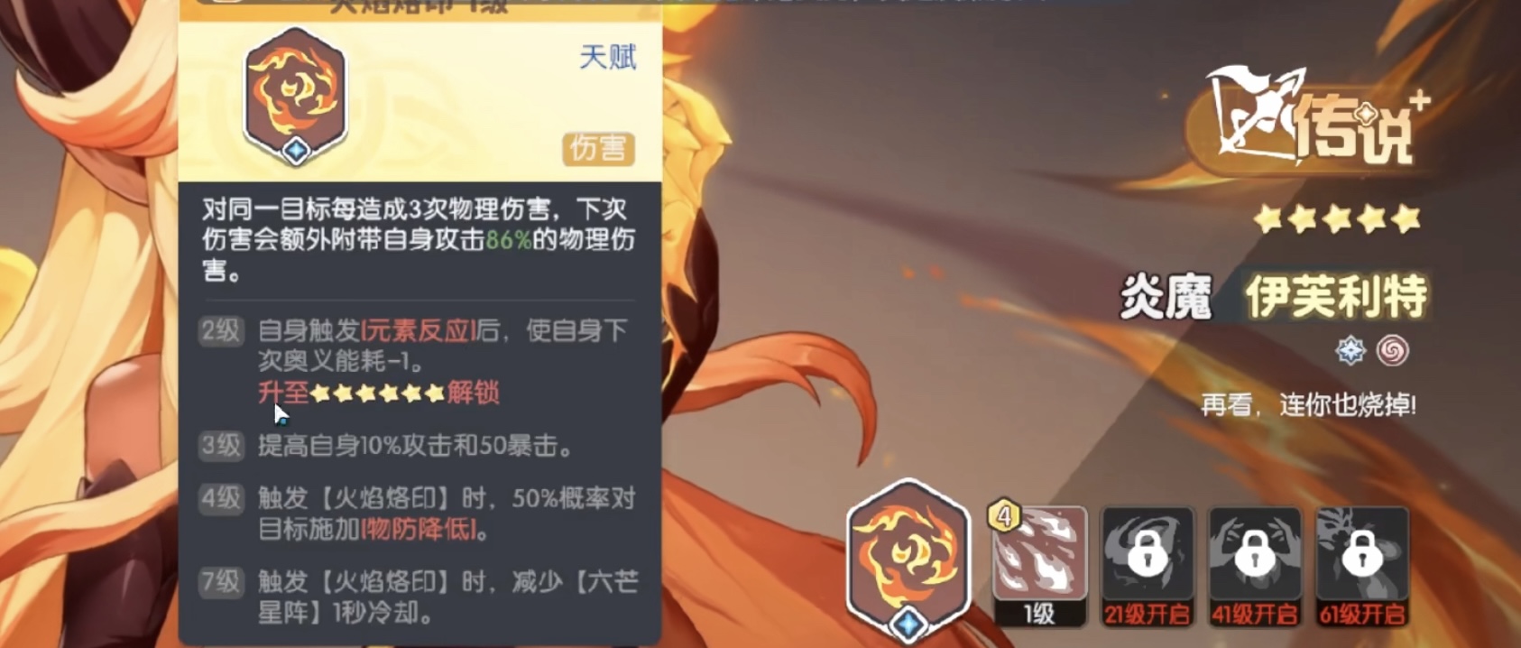 第三推荐角色:炎魔,属早期上线的限定英雄,具备极高的前期伤害上限。其技能组以高倍率范围伤害与短CD爆发为核心,成型速度快,养成路径简洁。建议新手玩家在开局阶段集中钻石资源抽取并优先完成觉醒——觉醒后的炎魔不仅在中期团队副本中持续输出能力跃升,更能在多波次战斗中提供可观的AOE压制效果,切实提升推图效率与战斗容错率。