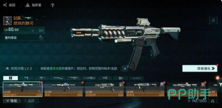 除常规数值加成外,每把武器还附带一项独特技能。例如顶级武器“燃烧的静河”可在释放首个大招时提升伤害,并依据范围内敌人数目额外获取最高9点大招能量;而“游鸮”则能延长部署单位的持续时间。这些技能可通过重构升级系统强化,最高等级为6级,每次重构均需消耗同类型武器作为材料。鉴于高阶武器升级难度较大,建议在团队成员均已配装后再行重构操作。