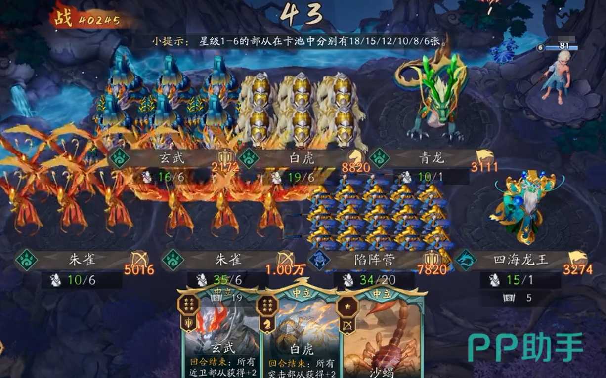 由于中立单位普遍缺乏后期专属成长资源,多数玩家习惯将其作为前中期过渡选择,待天书等级提升、其他阵营关键角色成型后即切换主力。因此,真正以中立为唯一输出轴且具备稳定高分能力的成型阵容极为稀缺。目前经大量对局验证,仅“四圣兽流”与“中立蛤蟆流”两套体系,在完整达成条件下可稳定跻身全局前二梯队——即便未获冠军,亦能确保第三名以上结算,容错率与终局强度均属中立路线第一梯队。