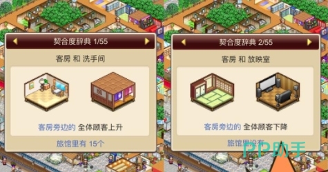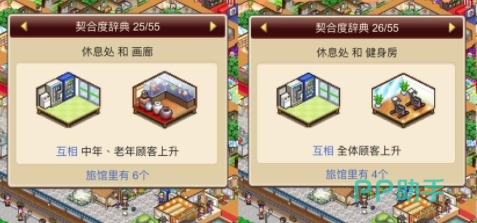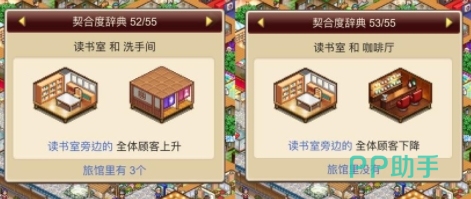 客房不管是搭配上洗手间还是休息处最后带来的加成都是正面的加成也就是客房旁边的全体顾客上升,类似的搭配还有客房加上储藏室的设施搭配也是一样的全体加成哦。