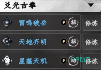 使用长兵器的侠士可优先尝试一字定海枪,作为基础枪法,它具备稳定的输出能力。其中涛落沙明用于直线攻击,精准打击前方目标;潮来潮去则针对周边敌人展开范围压制;风平浪静为蓄力技能,能在三米范围内积蓄力量后爆发高额伤害。拳法方面,爻光古拳是新手友好的选择,雷鸣破岳可穿透直线路径上的对手,天地齐明则影响前方扇形区域,实现群体压制,而星蕴天机作为被动技能,可在战斗中持续恢复真气与生命值,提升续航能力。