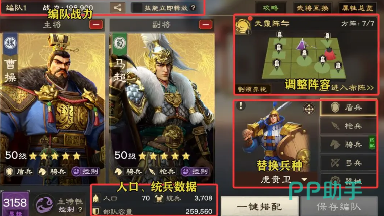 士兵承载上限由人口基数与统兵能力共同决定,遵循乘积计算规则。研发人口技术可突破常规上限,而统兵数值则取决于武将等级及校场等级的双重加成。这意味着高星级武将配合高级校场能够组建超大规模部队,在局部战场形成兵力压制优势。面对敌方低容量阵容时,这种人数差距会直接转化为输出与耐久的全面领先。战力评估方面,主界面显示的综合战力仅为参考值,真正反映战斗力的是编队界面内的专属评分系统,该系统综合考量科技加成、武将练度、兵种搭配合理性、统兵规模及装备配置等多个维度。右上角属性总览如同战术仪表盘,清晰呈现攻防速血等关键数据,便于快速识别短板环节。其中,武将自身成长尤为关键,技能升级与星级晋升带来的战力跃升远高于单纯增加兵力数量。