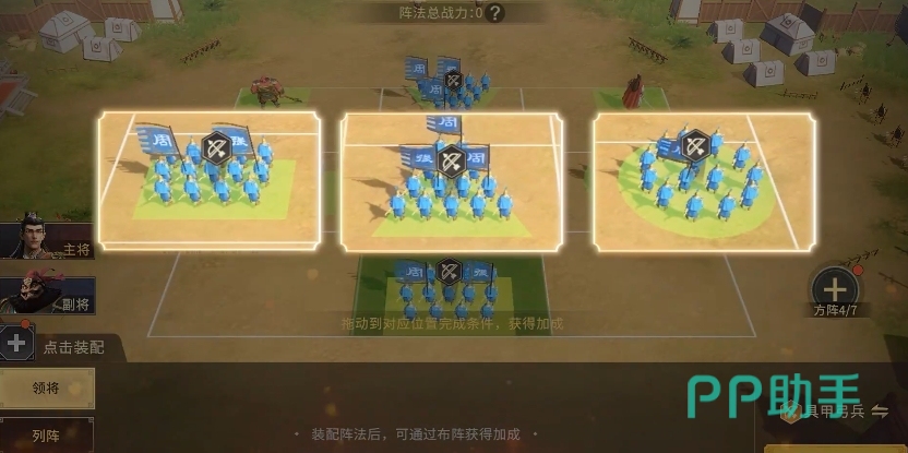 兵种之间存在明确克制关系:骑兵凭借高速机动掌控战场节奏,弓兵利用远程优势安全输出,盾兵承担前排抗伤职责,枪兵则以均衡性能应对多种战况。开荒阶段合理选择克制蛮族叛军的兵种组合,可大幅提升清剿效率。大规模团战中,采用多类型部队协同作战更能适应复杂局势,尤其可通过分析敌方主力构成,专门组建具有克制效果的反制阵容。阵法系统进一步丰富战术层次,玩家通过活动或招募获取阵法碎片,重复收集可提升其等级。优先强化主力部队所用阵法,收益更为显著。装配阵法后,在布阵界面调整武将站位以激活阵型加成,部分阵法还设有隐藏羁绊,如“割须弃袍”需特定武将组合并使用指定阵型方可触发额外效果。