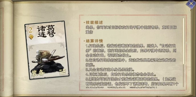 此外还有一个容易被忽视的细节是,当被标记的角色受到杀的攻击后,摸牌的动作是在触发其他相关技能,如诸葛连弩的连杀效果之前进行的,这意味着,即使攻击者手中只有一张杀,但在装备了诸葛连弩的情况下,也有可能通过白狼持麾摸到的额外手牌来继续发动连杀,当然在使用白狼持麾时,玩家还需要注意不要误标队友,因为标记的效果是针对被标记角色的攻击者,而不是被标记角色本身,所以在标记前,玩家需要确保自己的选择能够符合阵容需求。